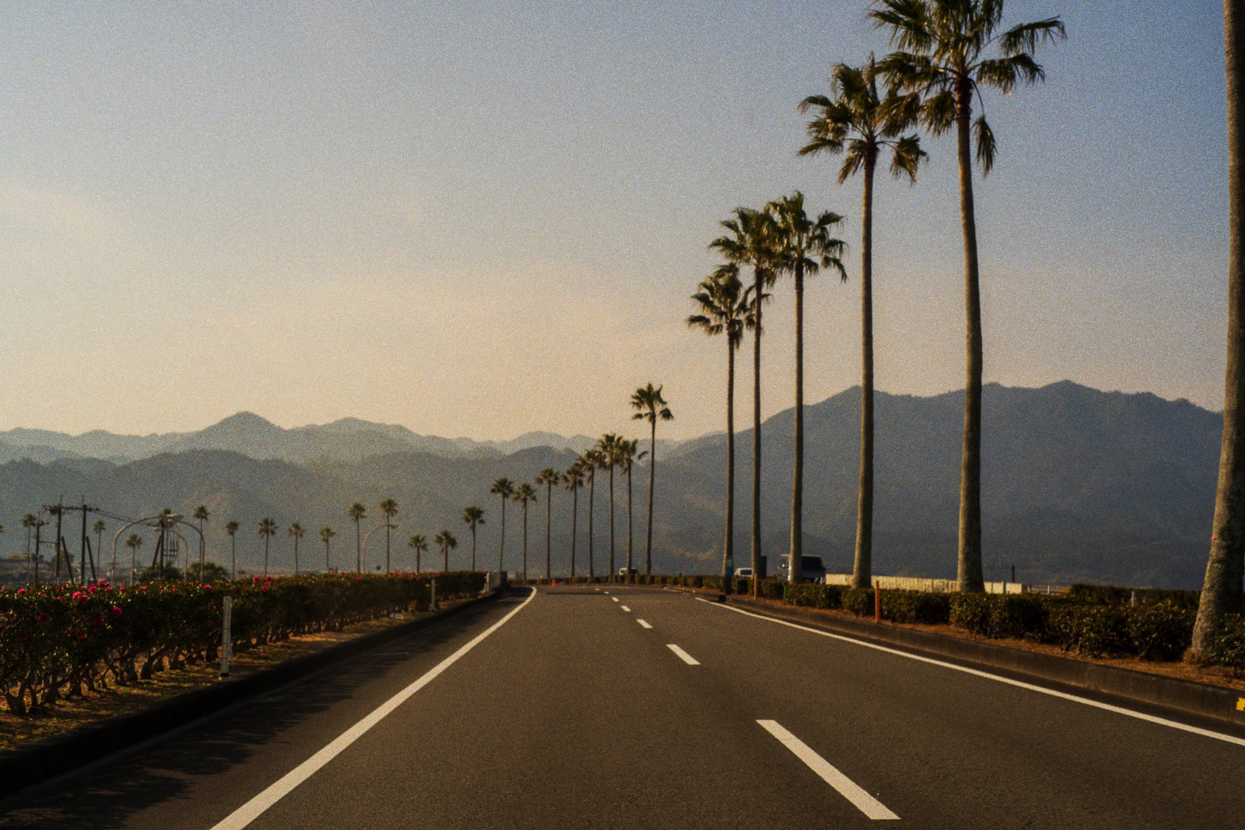 Morning — Drive south along the Nichinan Coast. Stop at a hidden cove. Coffee from a local fisherman's vending machine. Candid portraits in the morning light.